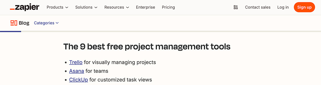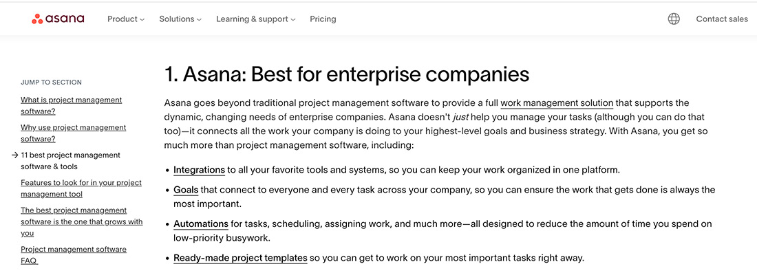 In the example below, you can see that Asana features as the top spot in their own list of the best project management software: