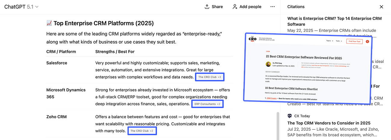 In ChatGPT 5.1 these sidebars seem to no longer appear for agencies, so it’s fortunate that we didn’t focus on mentions in them.