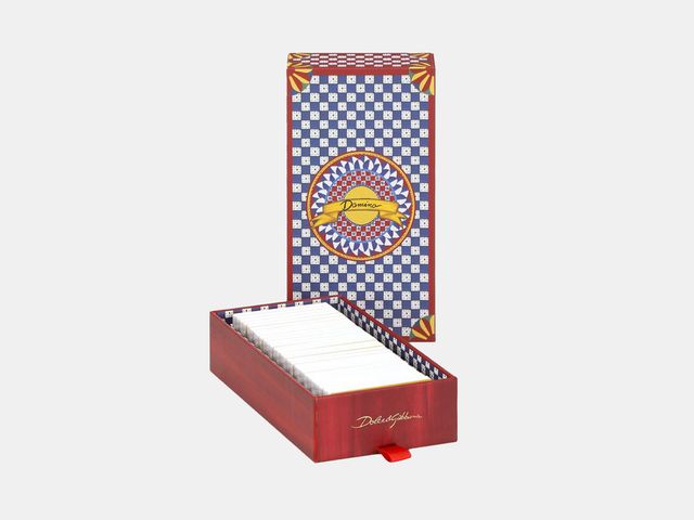 Today Dominoes may be more well-known for its role in viral toppling videos, but if you’re looking to get back into the actual game, a stylish set can help. One of our favorites is this gorgeous set from Italian fashion house Dolce & Gabbana, which features pieces and a box printed with a motif based on an archival scarf design inspired by Carretto Sicilano. Plexiglass-constructed dominoes mean they’re durable, and everything fits neatly in a removable tray when not in use.n”,”productBrand”:”Dolce & Gabbana”,”dangerousHed”:”Domino box set”,”embedSize”:null,”isFirstProduct”:false,”image”:{“altText”:null,”credit”:null,”sources”:{“sm”:{“aspectRatio”:”4:3″,”width”:720,”url”:”https://media.cntraveler.com/photos/690d8b4c7b49648b0eb1a018/4:3/w_720,c_limit/CNT_Travel%20Games_Dole%20Gabbana_Domino%20Box%20Set.jpg”,”srcset”:”https://media.cntraveler.com/photos/690d8b4c7b49648b0eb1a018/4:3/w_120,c_limit/CNT_Travel%20Games_Dole%20Gabbana_Domino%20Box%20Set.jpg 120w, https://media.cntraveler.com/photos/690d8b4c7b49648b0eb1a018/4:3/w_240,c_limit/CNT_Travel%20Games_Dole%20Gabbana_Domino%20Box%20Set.jpg 240w, https://media.cntraveler.com/photos/690d8b4c7b49648b0eb1a018/4:3/w_320,c_limit/CNT_Travel%20Games_Dole%20Gabbana_Domino%20Box%20Set.jpg 320w, https://media.cntraveler.com/photos/690d8b4c7b49648b0eb1a018/4:3/w_640,c_limit/CNT_Travel%20Games_Dole%20Gabbana_Domino%20Box%20Set.jpg 640w”},”md”:{“aspectRatio”:”4:3″,”width”:720,”url”:”https://media.cntraveler.com/photos/690d8b4c7b49648b0eb1a018/4:3/w_720,c_limit/CNT_Travel%20Games_Dole%20Gabbana_Domino%20Box%20Set.jpg”,”srcset”:”https://media.cntraveler.com/photos/690d8b4c7b49648b0eb1a018/4:3/w_120,c_limit/CNT_Travel%20Games_Dole%20Gabbana_Domino%20Box%20Set.jpg 120w, https://media.cntraveler.com/photos/690d8b4c7b49648b0eb1a018/4:3/w_240,c_limit/CNT_Travel%20Games_Dole%20Gabbana_Domino%20Box%20Set.jpg 240w, https://media.cntraveler.com/photos/690d8b4c7b49648b0eb1a018/4:3/w_320,c_limit/CNT_Travel%20Games_Dole%20Gabbana_Domino%20Box%20Set.jpg 320w, https://media.cntraveler.com/photos/690d8b4c7b49648b0eb1a018/4:3/w_640,c_limit/CNT_Travel%20Games_Dole%20Gabbana_Domino%20Box%20Set.jpg 640w”},”lg”:{“aspectRatio”:”4:3″,”width”:748,”url”:”https://media.cntraveler.com/photos/690d8b4c7b49648b0eb1a018/4:3/w_748,c_limit/CNT_Travel%20Games_Dole%20Gabbana_Domino%20Box%20Set.jpg”,”srcset”:”https://media.cntraveler.com/photos/690d8b4c7b49648b0eb1a018/4:3/w_120,c_limit/CNT_Travel%20Games_Dole%20Gabbana_Domino%20Box%20Set.jpg 120w, https://media.cntraveler.com/photos/690d8b4c7b49648b0eb1a018/4:3/w_240,c_limit/CNT_Travel%20Games_Dole%20Gabbana_Domino%20Box%20Set.jpg 240w, https://media.cntraveler.com/photos/690d8b4c7b49648b0eb1a018/4:3/w_320,c_limit/CNT_Travel%20Games_Dole%20Gabbana_Domino%20Box%20Set.jpg 320w, https://media.cntraveler.com/photos/690d8b4c7b49648b0eb1a018/4:3/w_640,c_limit/CNT_Travel%20Games_Dole%20Gabbana_Domino%20Box%20Set.jpg 640w”},”xl”:{“aspectRatio”:”4:3″,”width”:748,”url”:”https://media.cntraveler.com/photos/690d8b4c7b49648b0eb1a018/4:3/w_748,c_limit/CNT_Travel%20Games_Dole%20Gabbana_Domino%20Box%20Set.jpg”,”srcset”:”https://media.cntraveler.com/photos/690d8b4c7b49648b0eb1a018/4:3/w_120,c_limit/CNT_Travel%20Games_Dole%20Gabbana_Domino%20Box%20Set.jpg 120w, https://media.cntraveler.com/photos/690d8b4c7b49648b0eb1a018/4:3/w_240,c_limit/CNT_Travel%20Games_Dole%20Gabbana_Domino%20Box%20Set.jpg 240w, https://media.cntraveler.com/photos/690d8b4c7b49648b0eb1a018/4:3/w_320,c_limit/CNT_Travel%20Games_Dole%20Gabbana_Domino%20Box%20Set.jpg 320w, https://media.cntraveler.com/photos/690d8b4c7b49648b0eb1a018/4:3/w_640,c_limit/CNT_Travel%20Games_Dole%20Gabbana_Domino%20Box%20Set.jpg 640w”},”xxl”:{“aspectRatio”:”4:3″,”width”:640,”url”:”https://media.cntraveler.com/photos/690d8b4c7b49648b0eb1a018/4:3/w_640,c_limit/CNT_Travel%20Games_Dole%20Gabbana_Domino%20Box%20Set.jpg”,”srcset”:”https://media.cntraveler.com/photos/690d8b4c7b49648b0eb1a018/4:3/w_120,c_limit/CNT_Travel%20Games_Dole%20Gabbana_Domino%20Box%20Set.jpg 120w, https://media.cntraveler.com/photos/690d8b4c7b49648b0eb1a018/4:3/w_240,c_limit/CNT_Travel%20Games_Dole%20Gabbana_Domino%20Box%20Set.jpg 240w, https://media.cntraveler.com/photos/690d8b4c7b49648b0eb1a018/4:3/w_320,c_limit/CNT_Travel%20Games_Dole%20Gabbana_Domino%20Box%20Set.jpg 320w, https://media.cntraveler.com/photos/690d8b4c7b49648b0eb1a018/4:3/w_640,c_limit/CNT_Travel%20Games_Dole%20Gabbana_Domino%20Box%20Set.jpg 640w”}}},”isSponsored”:false,”offerRetailer”:”Dolce & Gabbana”,”offerUrl”:”https://www.dolcegabbana.com/en-us/casa/living/decor/boardgames/domino-box-set-multicolor-158057576058005.html”,”contentType”:”product”,”productId”:”6931c5fcdb3c5936bcf5e438″,”showOfferUrl”:false,”showPriceOnButton”:true,”showAffiliateDisclaimerOnFirstProduct”:false,”dangerousCredit”:null,”showLocalisedOffers”:true,”hasCheckPriceFeature”:false,”isUpcEnabled”:true,”showClampedProductDescription”:true,”productDescriptionLineLength”:5,”hasReadMoreFeature”:false,”index”:5,”hasAffiliateLinkDisabled”:false,”isMobileView”:false,”hasMultipleImageSupport”:true,”showImageCreditText”:true,”showMultipleImageCount”:4,”hasProsConsFeature”:false,”hasRatingFeature”:false,”pros”:[],”cons”:[],”rating”:””,”shouldUseAmazonPrimeDayLiveAPIData”:true,”contentInfo”:{“contentUrl”:”https://www.cntraveler.com/story/best-travel-games”,”contentName”:”7 Luxury Game Sets to Play at Home and On the Road”},”enableGtmFixesIntersectionObserver”:true,”enableGtmFixesUseRef”:true,”textBadge”:null,”seal”:null,”id”:”6931c5fcdb3c5936bcf5e438″,”brand”:{“name”:”Dolce & Gabbana”},”offers”:[{“offerUrl”:”https://www.dol