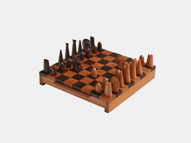 For a chess set that doubles as a statement decor piece, look no further than this mahogany and leather number. Hermès, of course, is best known for its impossible-to-snag leather handbags, like the famed Birkin and Kelly, but the brand’s range of home goods should not be overlooked. Its chess set, made of mahogany and cassia woods, is a perfect example why. It features hand-sculpted sycamore and jackfruit wood pawns with Clou de Selle engraved stainless steel weights, and even saddle-stitched handles of taurillon H leather. Drawers on either side ensure safe keeping of your king, queen, and all your pieces when not in use.