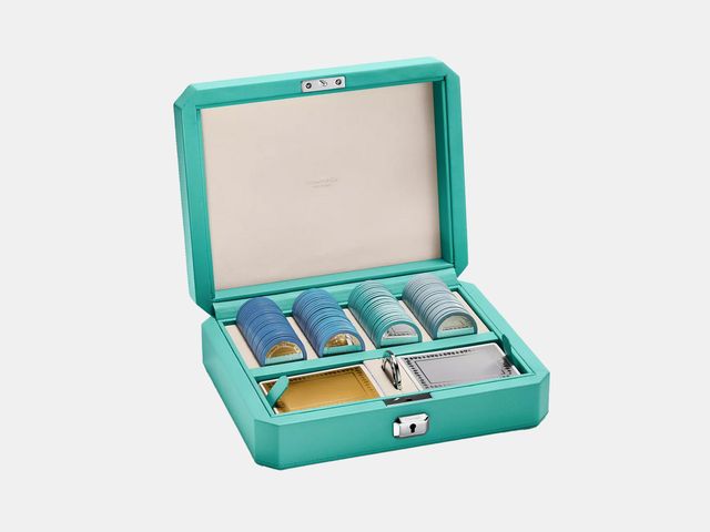 For a poker night that channels more Monaco than Las Vegas, consider scooping up this refined set from Tiffany & Co, which comes with two decks of playing cards, leather-accented silver chips, and dealer coin embossed with the brand’s signature blue. And, in an ode to the jewelry house’s legacy, the whole set is housed in a Nappa leather box (also in Tiffany blue) that’s reminiscent of a faceted gem.