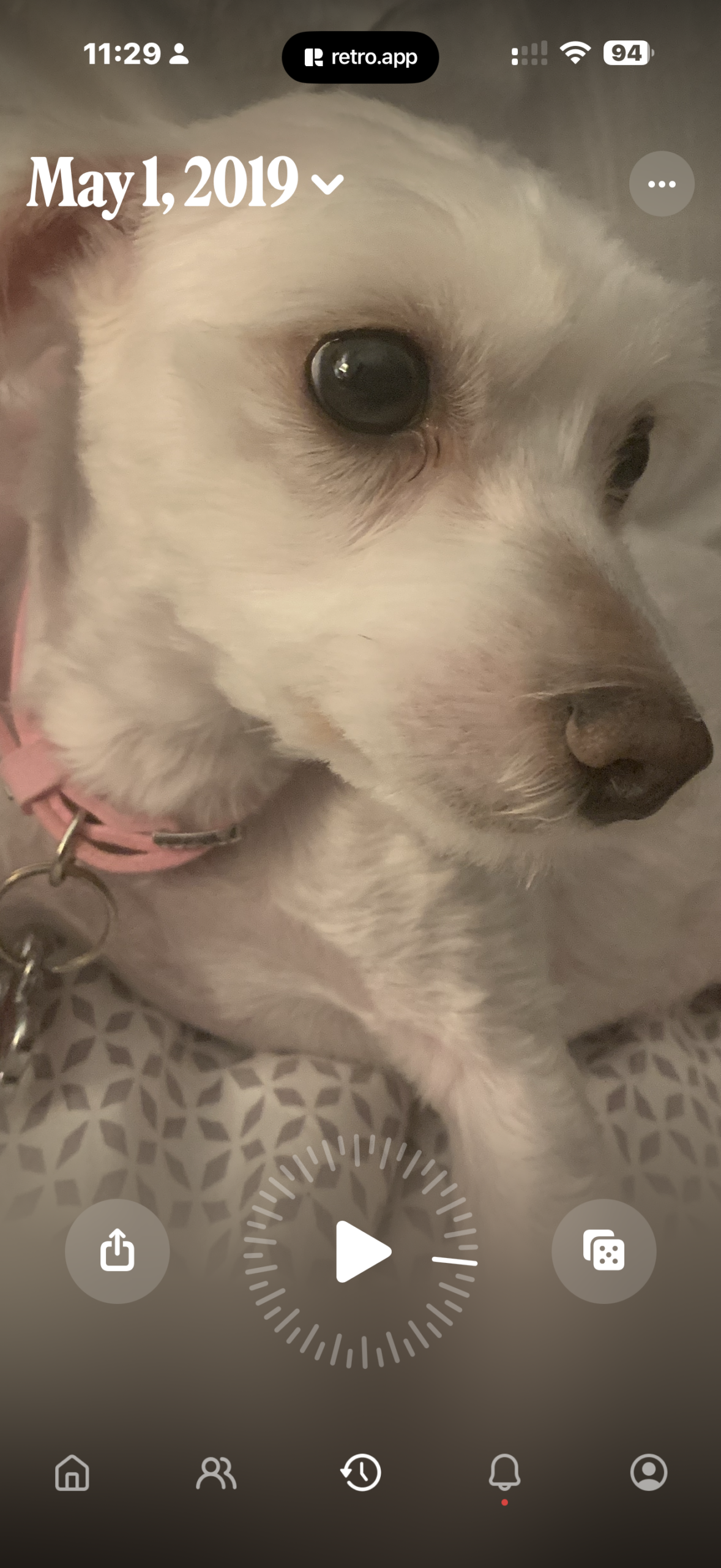 When launched, there’s a haptic response as the screen starts cycling through the older photos pulled from your Camera Roll. These memories aren’t being shared, but you can tap on the share icon if you feel inspired to send them to a friend or post them. In addition, you can opt to hide photos you’d rather not see (like those of an ex), or tap a “dice” icon to be taken to a random memory instead.