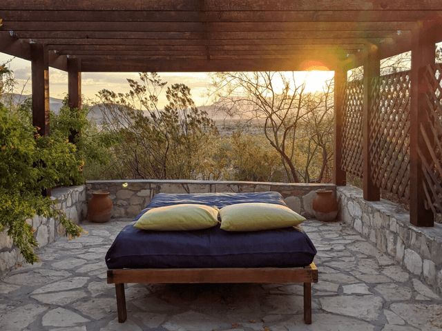 They say that good things come in small packages, which is especially the case at this charming, petite adobe cabin. The indoor space is basic, with a queen-size bed, full kitchen, and small breakfast nook, but the outdoor space is where this property truly shines. When you’re done rafting Santa Elena Canyon and hiking the Window Trail, warm up by the handmade outdoor fireplace, dine in the shade as the sun sets, or snuggle up under the stars on the large outdoor bed.