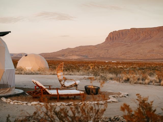 As the name might suggest, Starstruck Glamping was constructed to highlight the wonders of West Texas after sundown. As such, guests here will be treated to phenomenal sunset views from their fully equipped outdoor kitchens, and each geodesic dome comes with a telescope to help them witness some of the darkest night skies in the world. The interiors of Starstruck’s tents are pretty posh, too, adorned with heavenly queen beds, spa-inspired en suite bathrooms, geometric rugs, and split heating/cooling units.