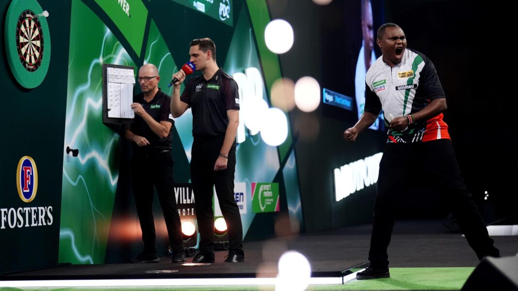 The 30-year-old, who qualified via the African Darts Group Qualifier, was broken in the first leg of the decider but produced an astounding outer bull-treble 20-bullseye 135 finish to level it, before holding his nerve to complete victory.