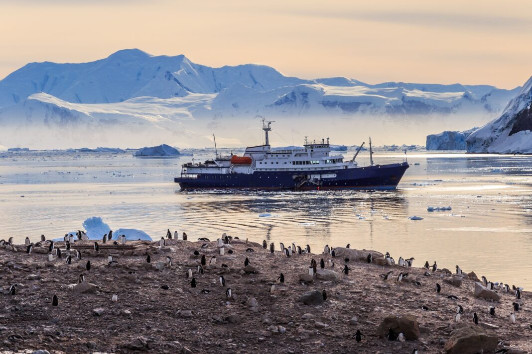 Life on board the Ultramarine is refined yet rugged: Cabins range from Explorer Triples to Deluxe Balcony Suites, all with heated floors, cozy furnishings, and panoramic windows. There’s a wellness center with a sauna and spa, a theater for expert-led talks, and a wraparound deck for wildlife watching.
