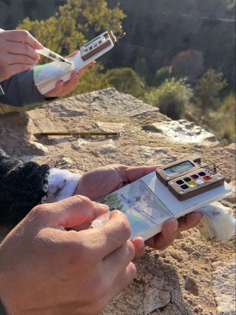 Vanlifers have a different but related advantage when it comes to space: limited flat surfaces and storage. A watercolor kit doesn’t need a desk setup. You can paint sitting on a beach, perched on your van’s back bumper, or cross-legged on a picnic blanket.