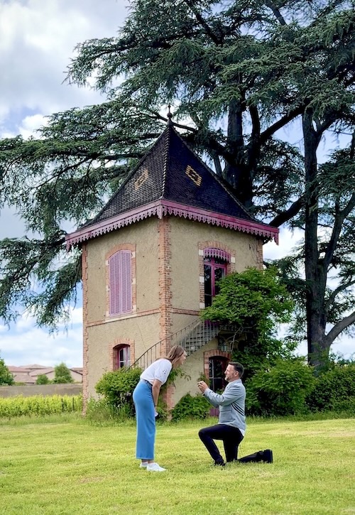 On our 18-year anniversary (yes, 18!), Nick popped the question at an estate in the Beaujolais wine region in France, surrounded by vineyards. It was the most romantic, special day you can even imagine.