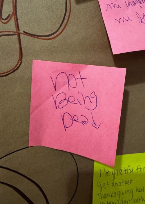 Nathan pretty much summed up both his sense of humour and what we were all thinking at Thanksgiving when he added his note to the gratitude board: