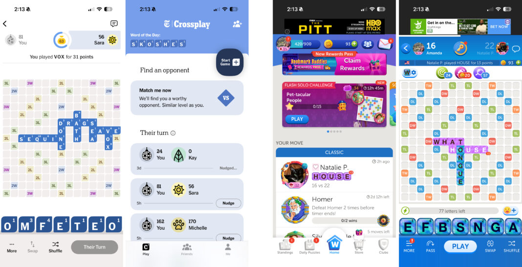 Crossplay is not a Scrabble clone exactly, but unless you are the type of Scrabble lover that goes to tournaments or memorizes the Scrabble dictionary, it’s basically Scrabble. The game board and tile distribution are a bit different, and there’s a slight rule change around what happens once the bag runs out of tiles. Those differences may have been done for legal reasons. As a casual player, I barely noticed them.