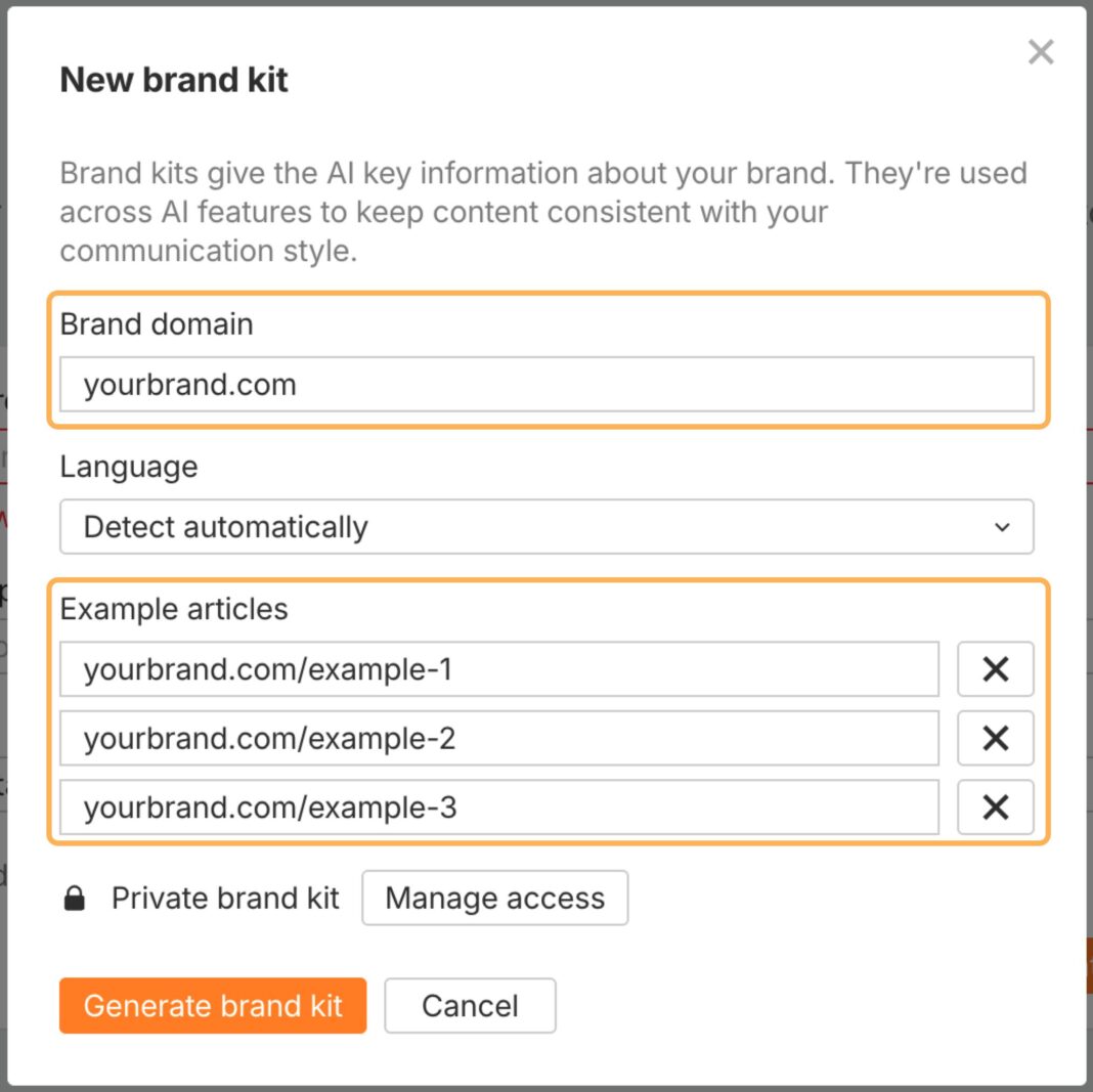 Or, use AI Content Helper’s Brand Kit to generate one automatically from your website and existing content.