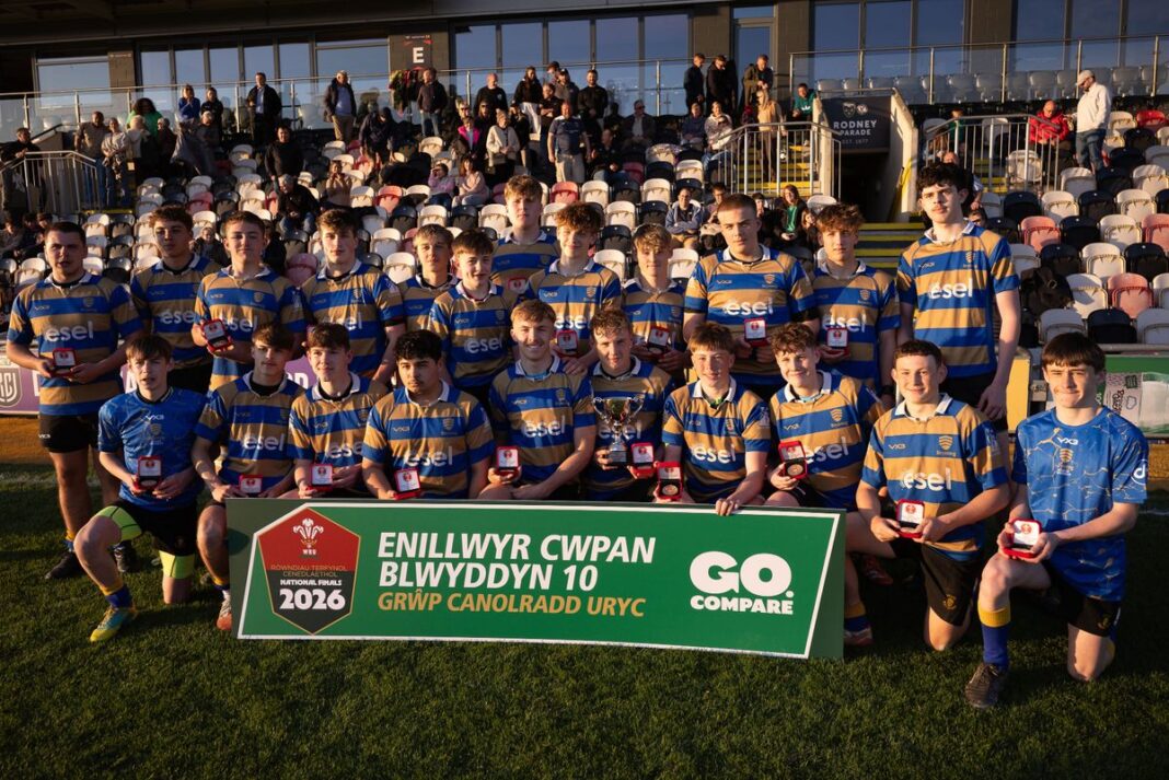 They overcame Ysgol Garth Olwg 38-10 in Newport to lift the Welsh Schools Cup for that age-grade, with the team having already lifted the District Cup, Ospreys Cup and Urdd 7s in recent days to complete an impressive clean sweep.