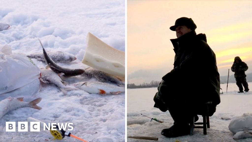 On the frozen surface of the mighty River Dnipro, the BBC speaks to men who spend hours fishing to take their minds off the almost four-year-old conflict, which has left homes with no heating after Russian strikes on power stations.